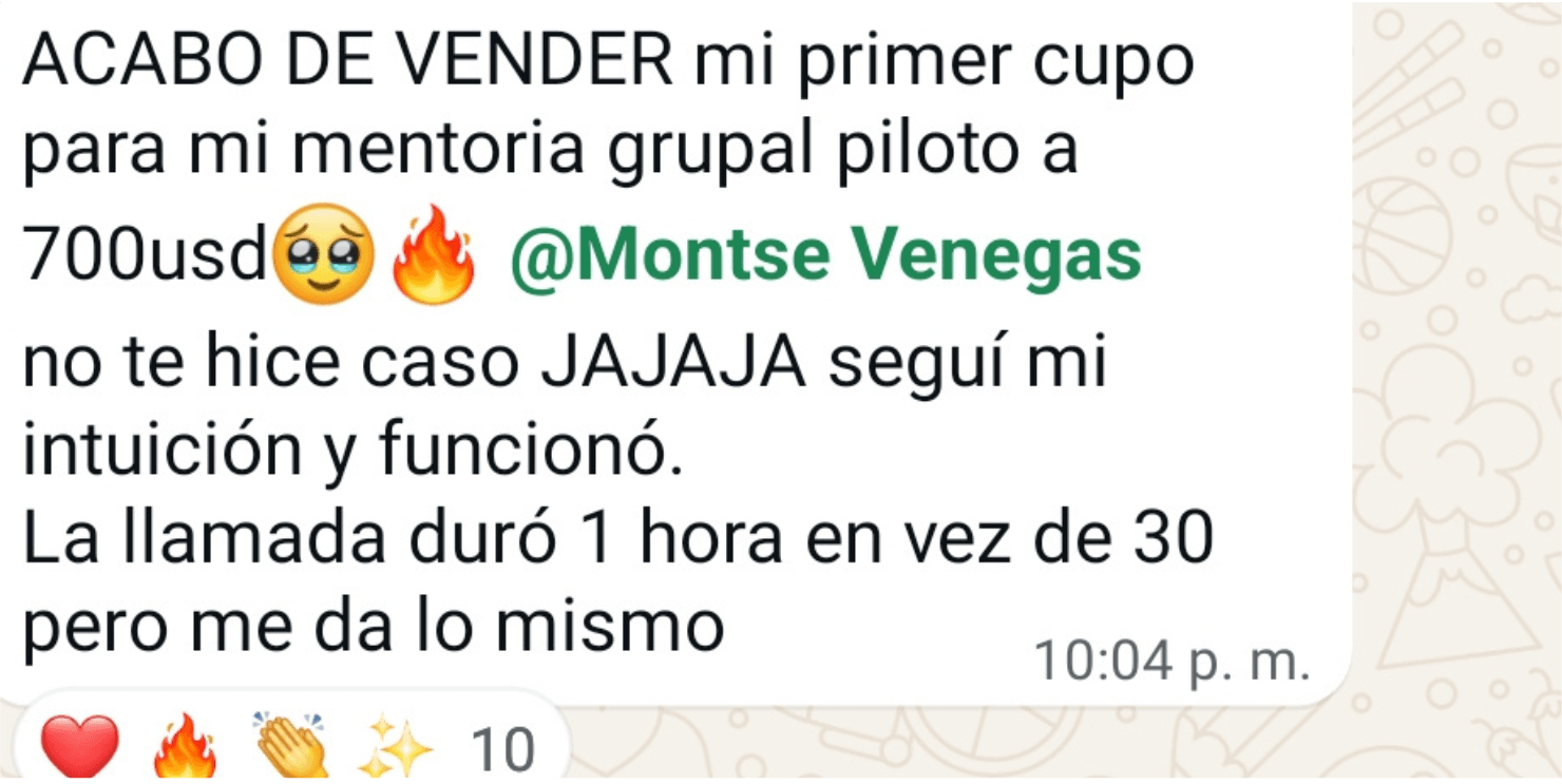 ✔ Estás aburrida de estrategias de ventas agotadoras o sesiones 1:1 que ocupan todo tu tiempo, y quieres ganar libertad para disfrutar más, viajar o dedicar las tardes a tus hijos.