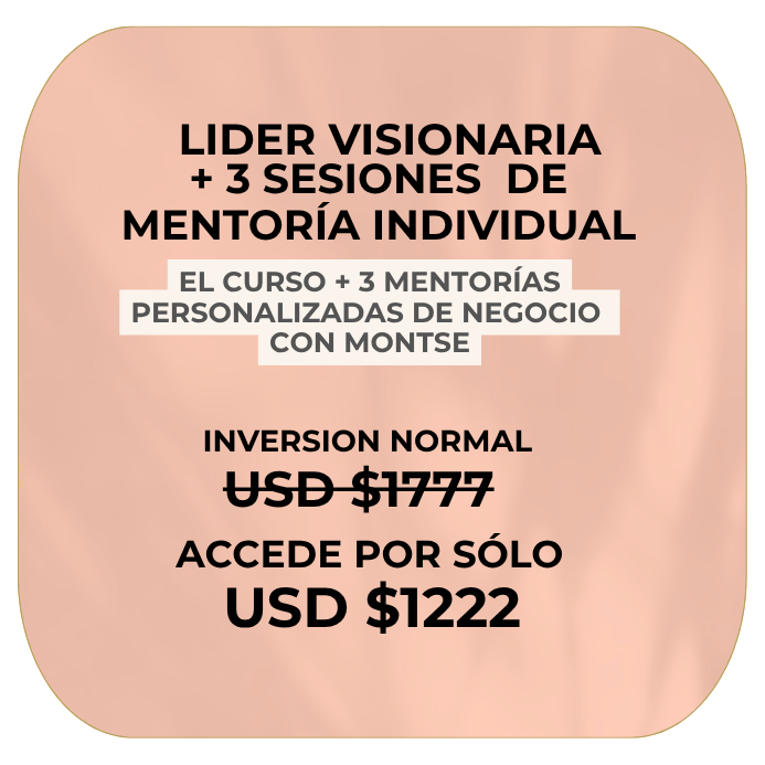 ✔Sabes que estás hecha para más y quieres impactar a muchas personas trascendiendo como la líder que eres, decidida a seguir tu llamado con servicios que escalen en el tiempo, sin tener que improvisar cada mes.
